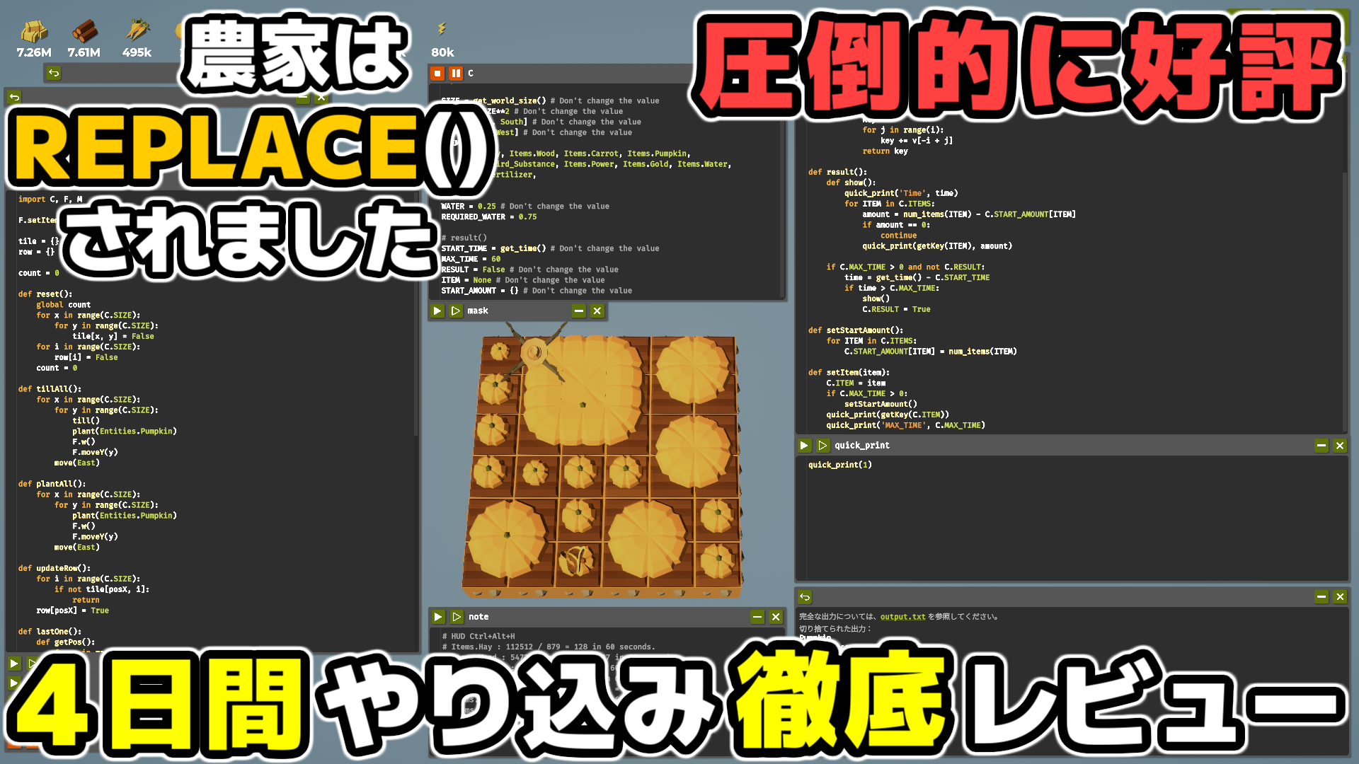 【Steamで話題】ドローンをプログラミングし農業を効率化!4日間やり込み徹底レビュー『農家は Replace() されました』