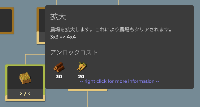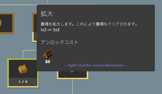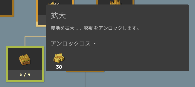 同じく木材20個で農場を3×3マスに拡大します。