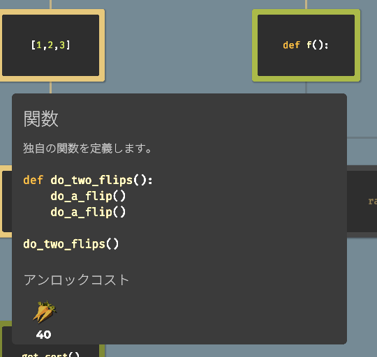 ニンジン40個で関数をアンロックします。恐竜の攻略に必要になります。