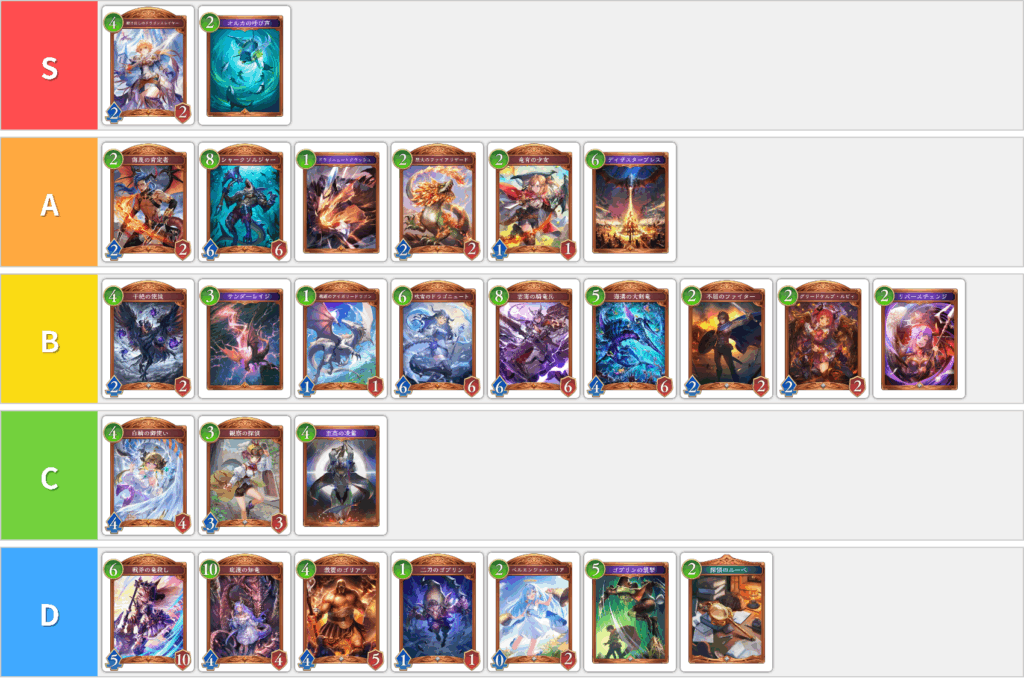 今回は、シャドバWBの2Pickで資産を稼ぎたい人に向けて、今シーズン最強のドラゴンのTier表と戦略を徹底解説します。前回の2Pick全クラスTier表まとめ公開後さらに使い込んだため順位の変動がありますが、こちらが最新となります。Tier表はニュートラルを含めすべて評価しました。第3弾カードパック「絶傑の継承者」リリース後のシーズン2環境となります。
