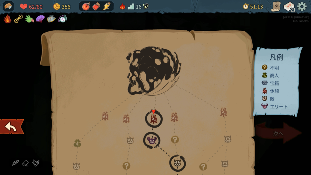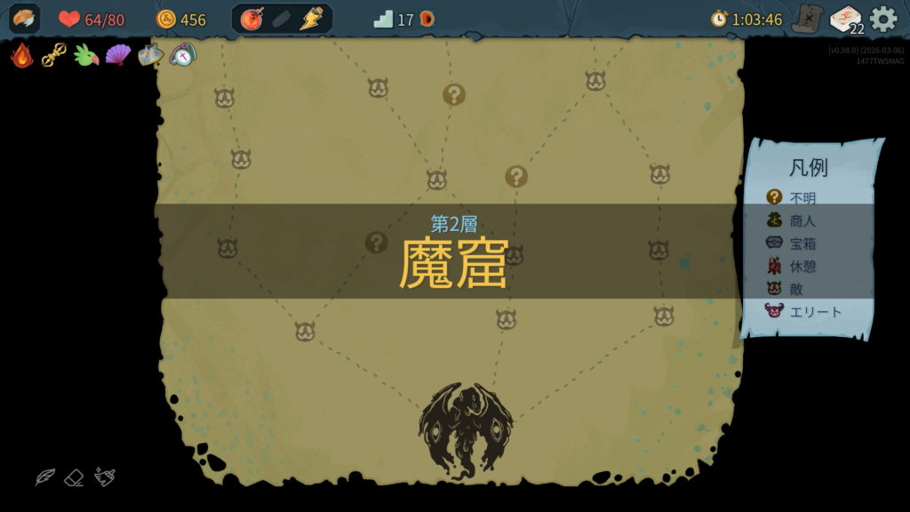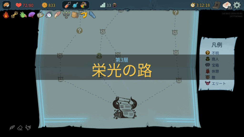 第2層。最初のマスでは強力なレリックがもらえる特殊イベントが発生します。