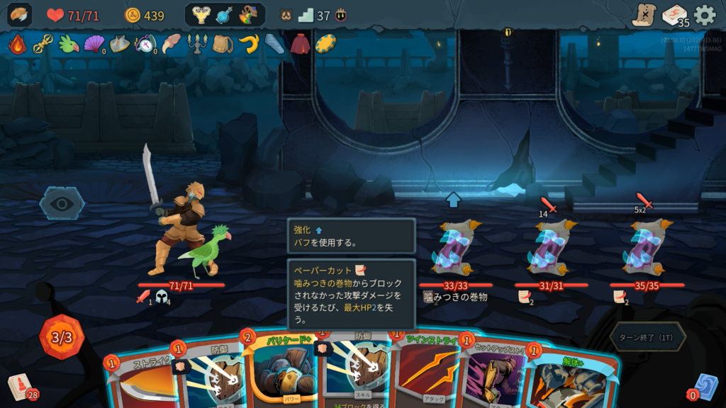 最大HPを減らしてくる「噛みつきの巻物」というまぁまぁ危険な敵が登場しました。