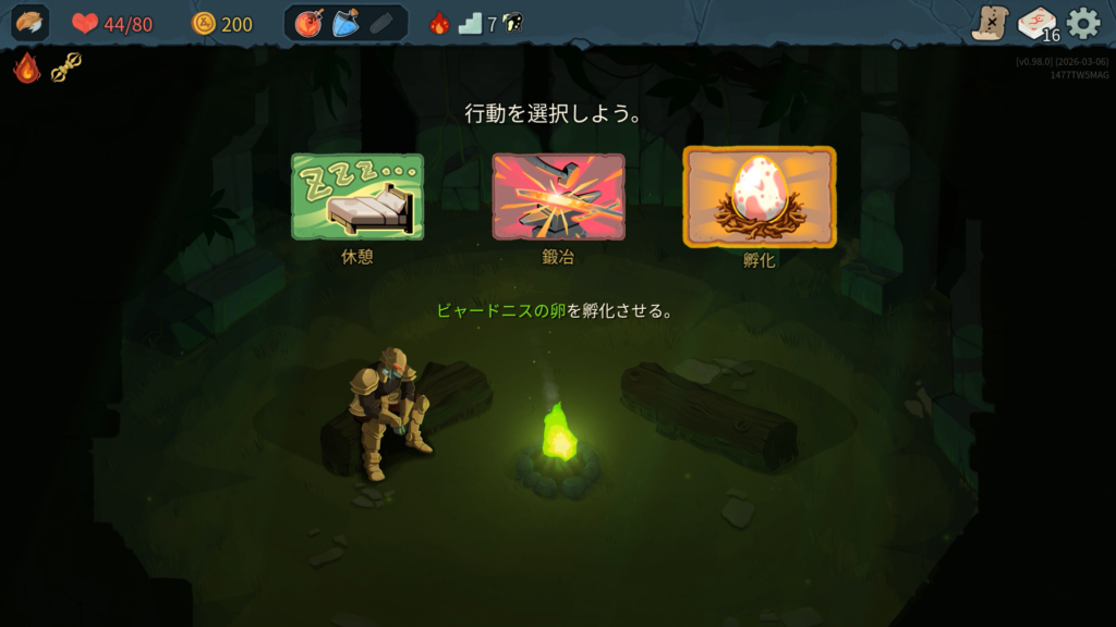 休憩マスで、ビャードニスの卵を「孵化」できるようです。