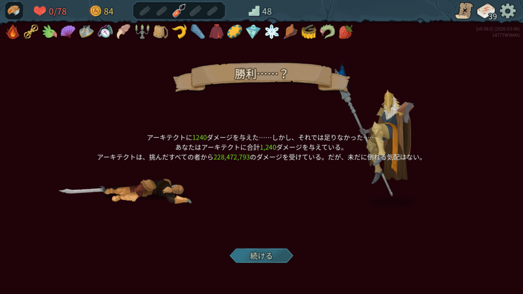3層ボスを倒すとアーキテクトの待つ部屋へと進む。先制攻撃を仕掛けるが返り討ちに合い、負ける。この時与えたダメージ値が全世界のプレイヤー達の合計値に加算されて最後に表示される。この演出は前作のラスボスである「堕落の心臓」に対するものと等しく、今作のラスボスはこのアーキテクトだと推測される。